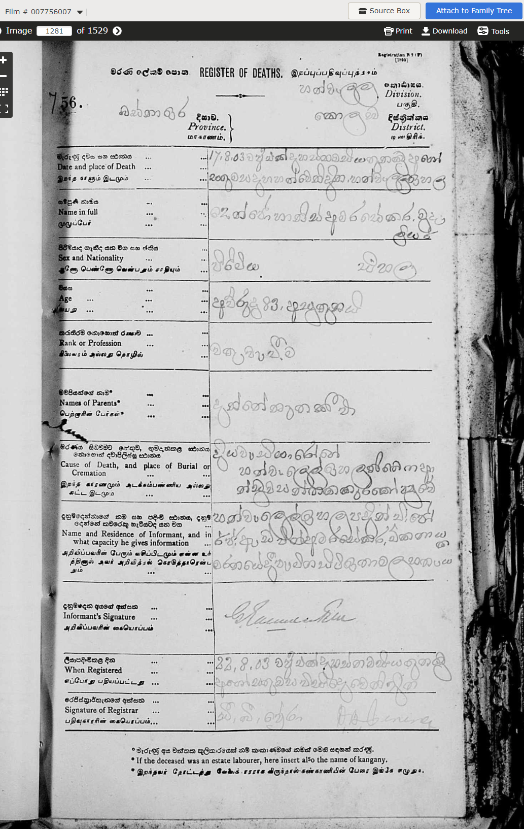 Birth record shows his DOB as 1st April 1824, which is probably more accurate. But the paragraph on Golden Year book states his DOB as 25/12/1822, as shown in Fig. 1 below. His Death record gives his age as 83 years at the time of death, which would make his birth year 1820, adding a third possible birth year in to the mix. It has been noticed that reverse calculation of birth year by the given age of a death certificate has not been accurate in most instances, though it gives a rough idea when it occured. It is understandable, as the recorded age on death certificate is what is given by a third-party, viz.; the informant of the death to registrar.