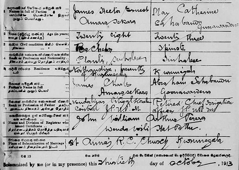 | JC's son JHE's marriage certificate copy sent by Gita (Received from Sheannal Anthony Obeysekere | ||||||||||||||||||||||||||