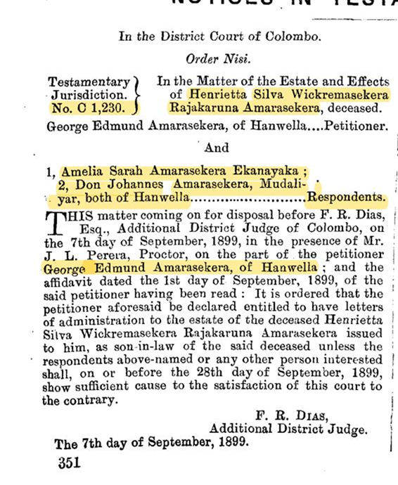 (would be the father of Don Johanis Amaraseakara who received 1/8th of land