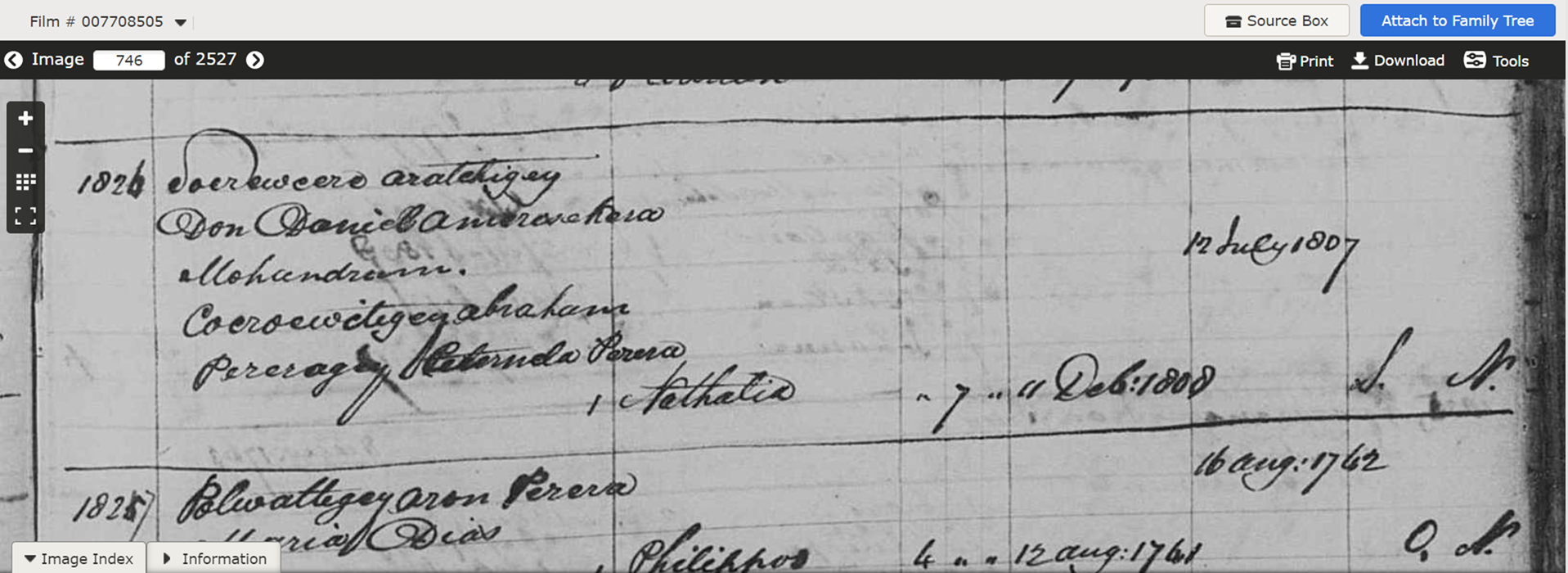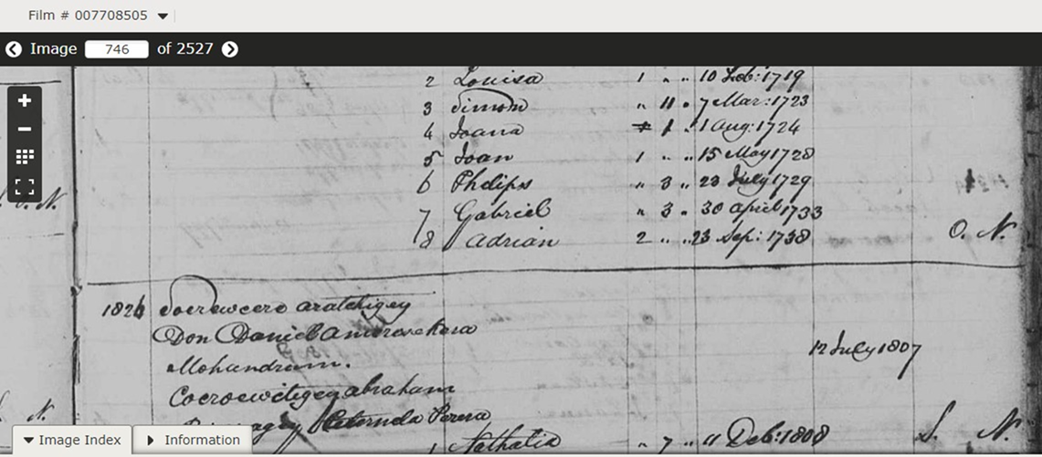 shows) Abraham Pererage Peternela Perera on 12 July 1807 and had a daugter